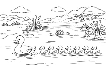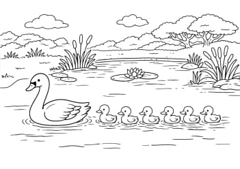 Canard et canetons qui nagent