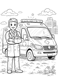 Docteur en uniforme et son ambulance