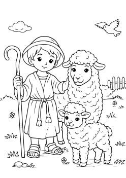 Jeune berger et deux brebis
