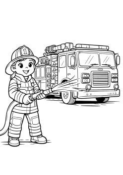 Pompière en action à côté de son camion