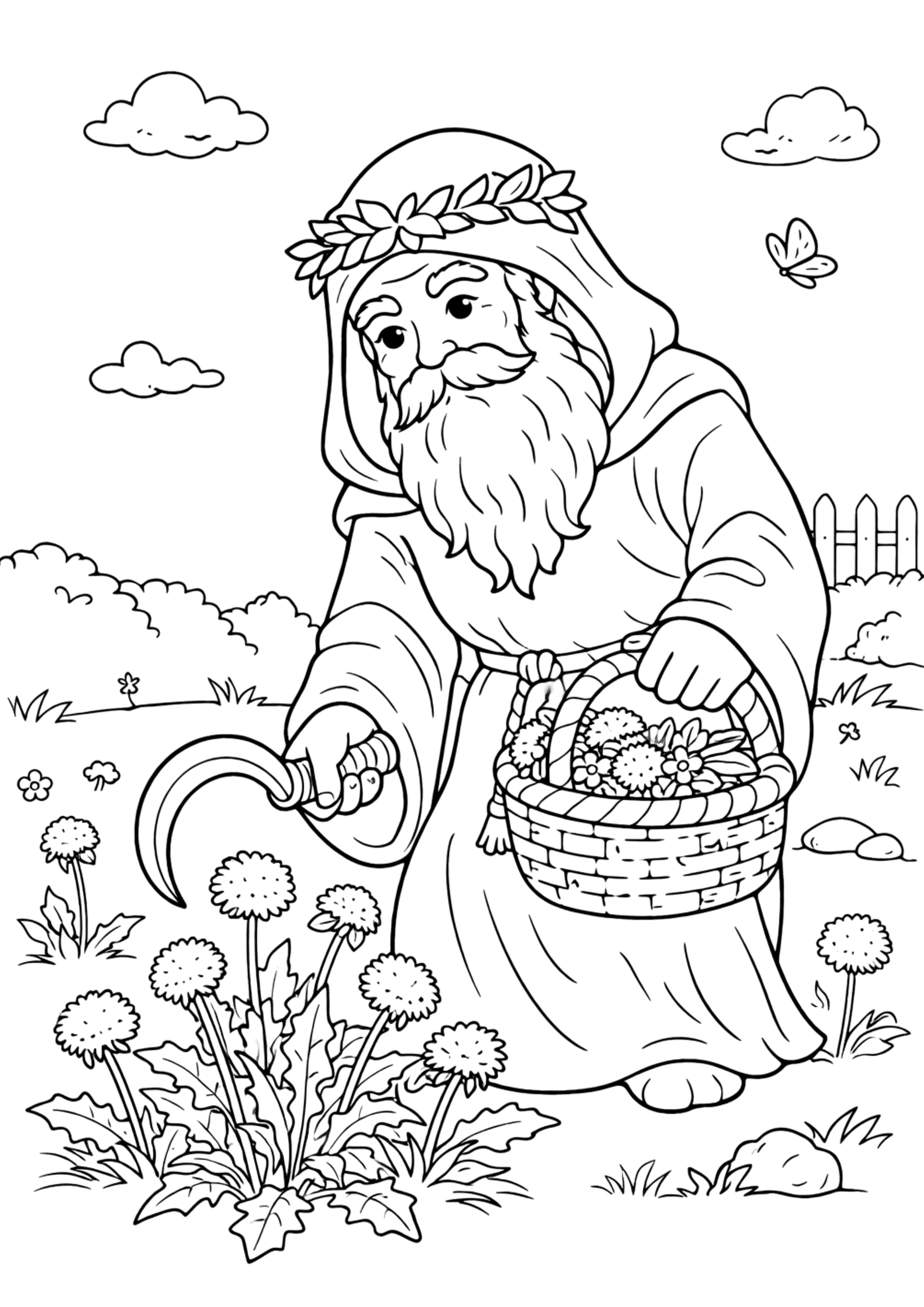 Publié le 08/01/202608/01/2026 par mikeDruide cueillant des pissenlits partager: Un druide celte muni de sa serpe ronde et de son panier cueille des pissenlits. Difficulté : 🖶 Imprimer ⤓ Télécharger