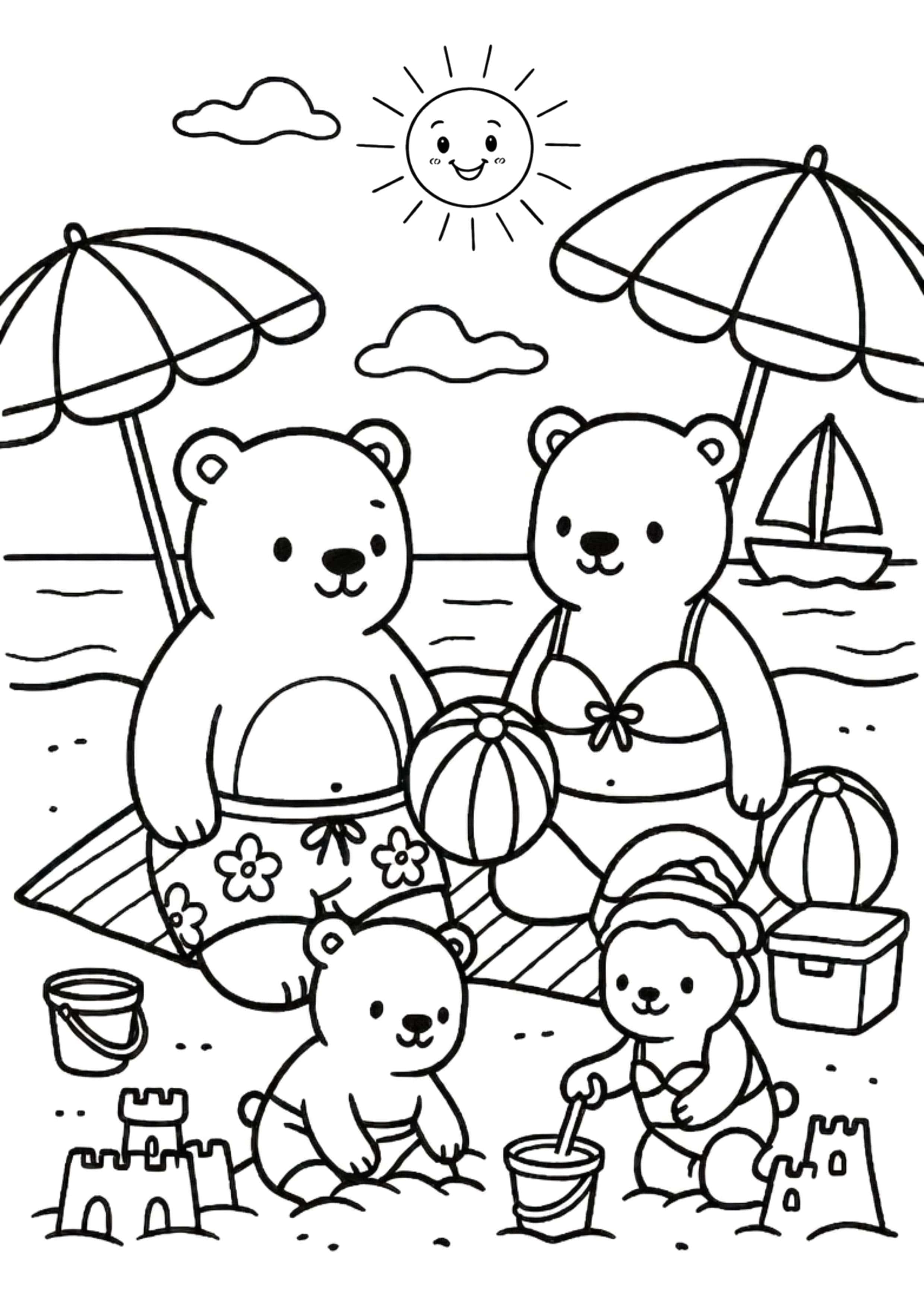 Famille ours jouant à la plage
