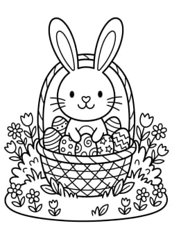 Lapin et panier d’œufs de Pâques